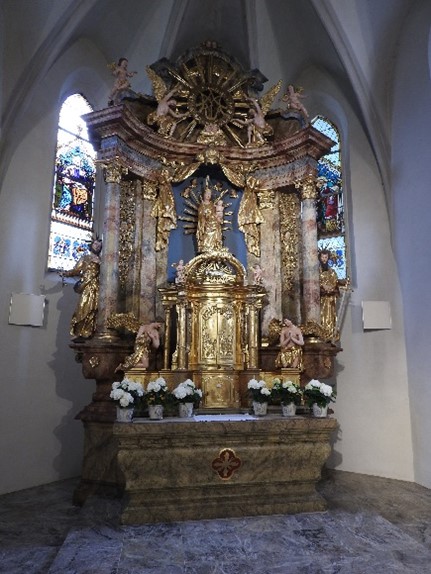 Nachmittags gab es dann eine hochinteressante Führung in der Wallfahrtskirche „Maria Gnadenbrunn“, die einen heute noch sichtbaren gotischen Grundstock hat. Die Chorkapelle und die Maria mit dem Jesuskind auf dem Hauptaltar sind gotisch.