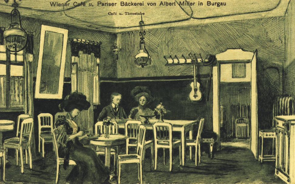 Pariserbäck, Cafe Albert Miller 1910 (nach einer Fotografie stilisiert)