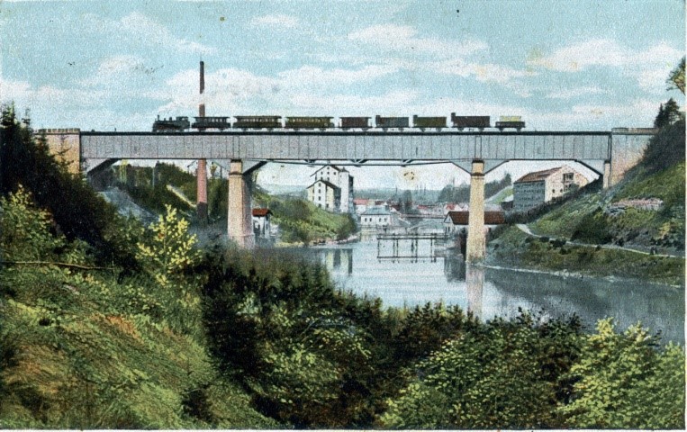Die Bilder vom Burgauer Bahnhof und der Darstellung des ehemaligem Wagen- und Pferdeverkehrs auf der heutigen B 10 sind vom Autor gefertigt. Bild mit der 1851 fertiggestellten Illerbrücke und Zug aus der Sammlung Schmidt/Kempten.