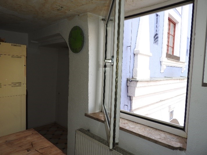 Zugang zum Stadtturm über den ersten Stock im Hause Mühlbauer