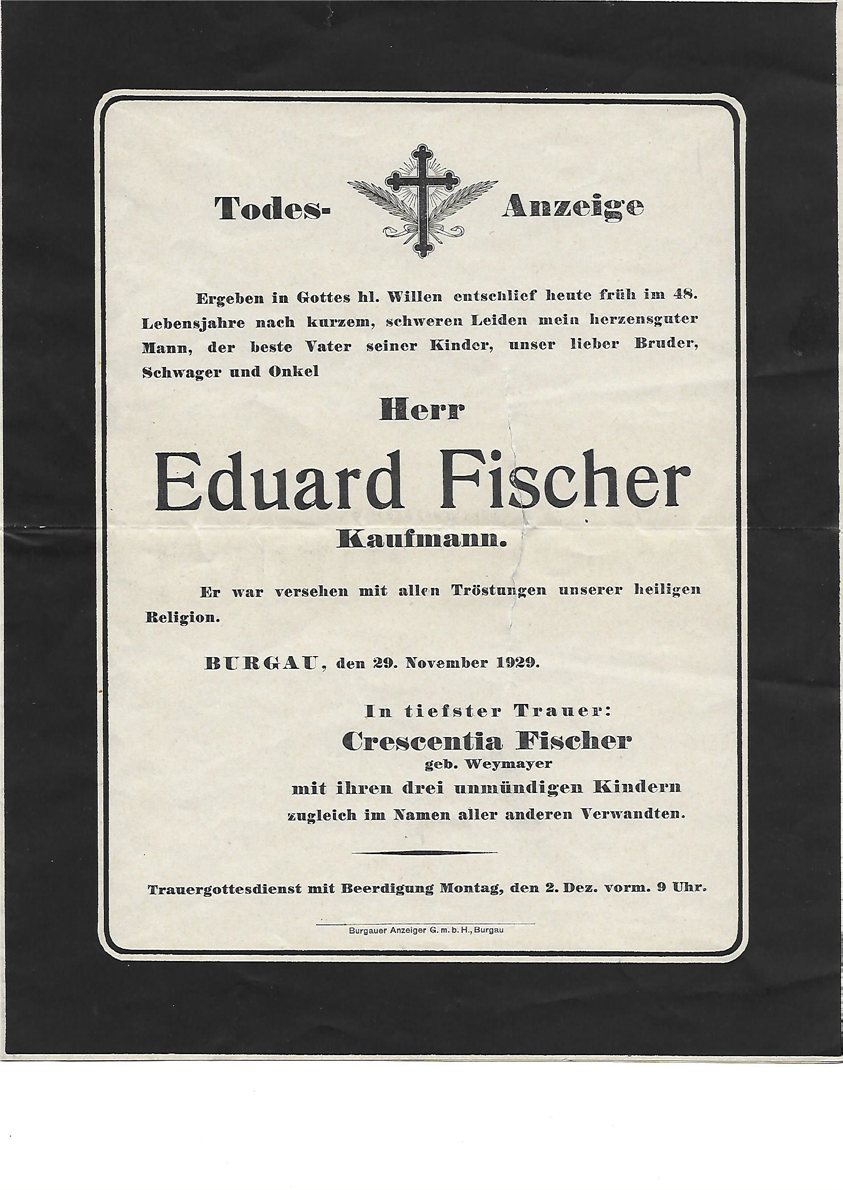 Todesanzeige von Eduard Fischer