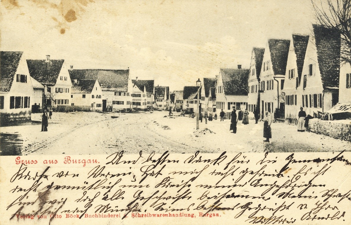 Da in Burgau viele Jahre ein Amtsgericht untergebracht war, gab es auch sogenannte Oberamtsratswitwen. So eine lebte etwas 1910 nicht weit entfernt vom damaligen Amtsgericht und heutigen Rathaus. Frau „Rat“ hatte auch ein „Mädchen“ für ihren Haushalt. Diese junge Frau war aus Winterbach und kam jeden Tag mit dem Fahrrad nach Burgau.