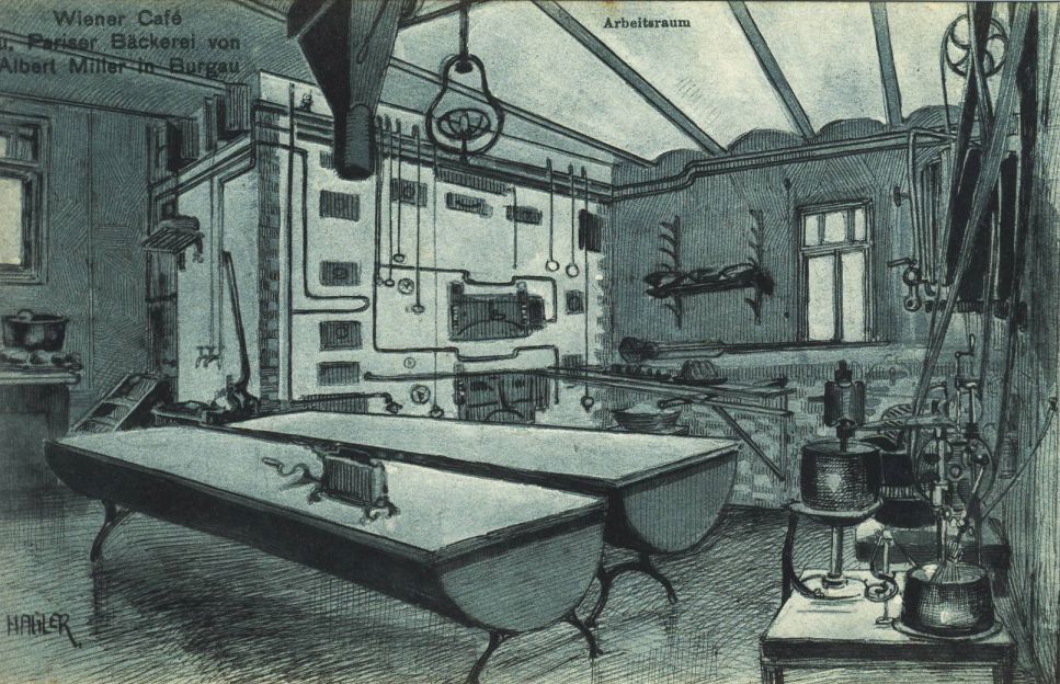 Pariserbäck, Cafe Albert Miller 1910 (nach einer Fotografie stilisiert)