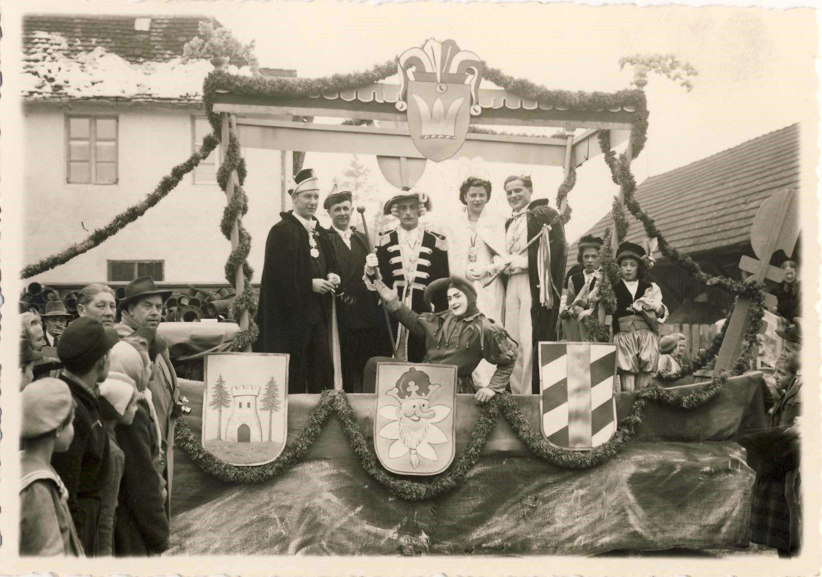1952 regierten dann als närrische Tollitäten "Prinz Paul I. und Prinzessin Fanny I. von Burgavia". Dahinter versteckten sich Paul Geiger und Fanny Tippel. Zu einem richtigen Hofstaat gehörten ein Hofmarschall "Fernando von Kipponus" (Ferdinand Kippenhahn) und der Hofnarr "Pfiffikus der Wendige" (Karl Haugg).
