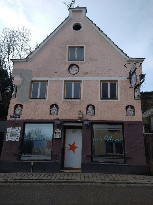 Abbildung: Haus der ehemaligen „Pfarrhof-Bäckerei“ in der Stadtstraße mit schönem Giebel, Ph. Jedelhauser.