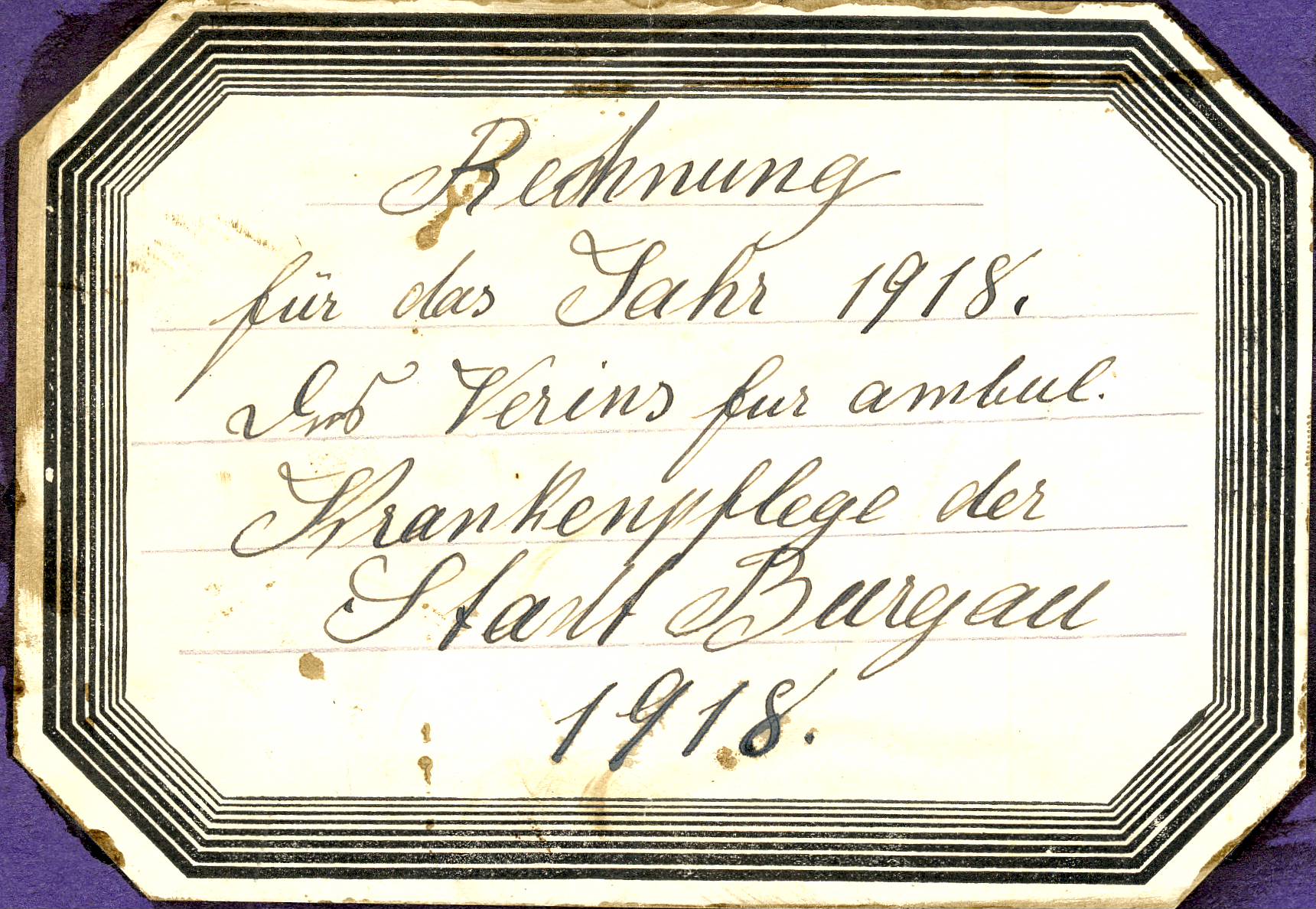 Ab 1914, nach dem Beginn des Ersten Weltkrieges, gibt es im Archiv des Burgauer Krankenpflegevereins nur noch spärlich verwendbare Archivalien für eine Chronik. Die Rechnungsbücher und die Einhebelisten sind vorhanden, aber es gab wohl in den vier Kriegsjahren keine Mitgliederversammlungen mit aussagekräftigen Protokollen mehr.