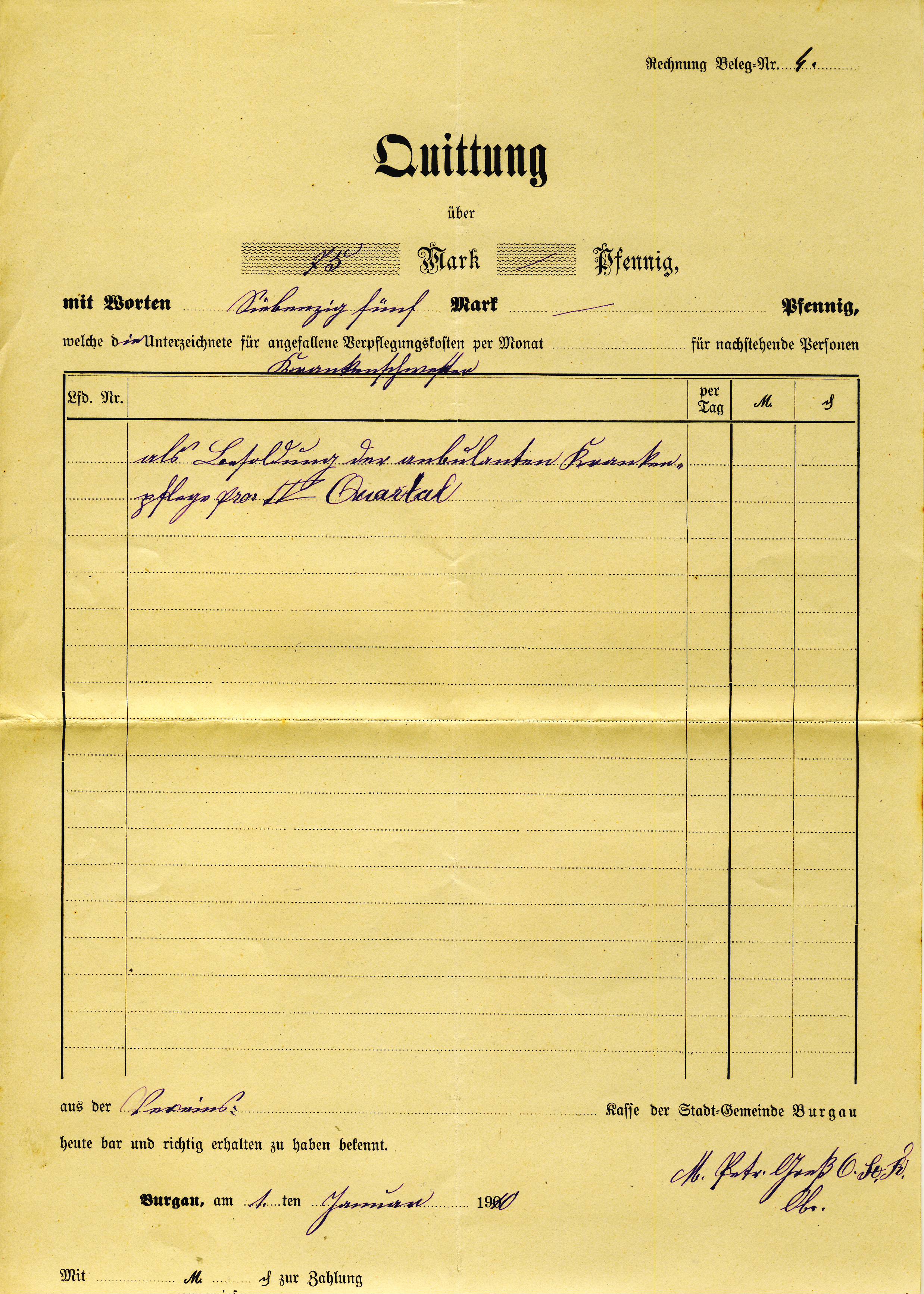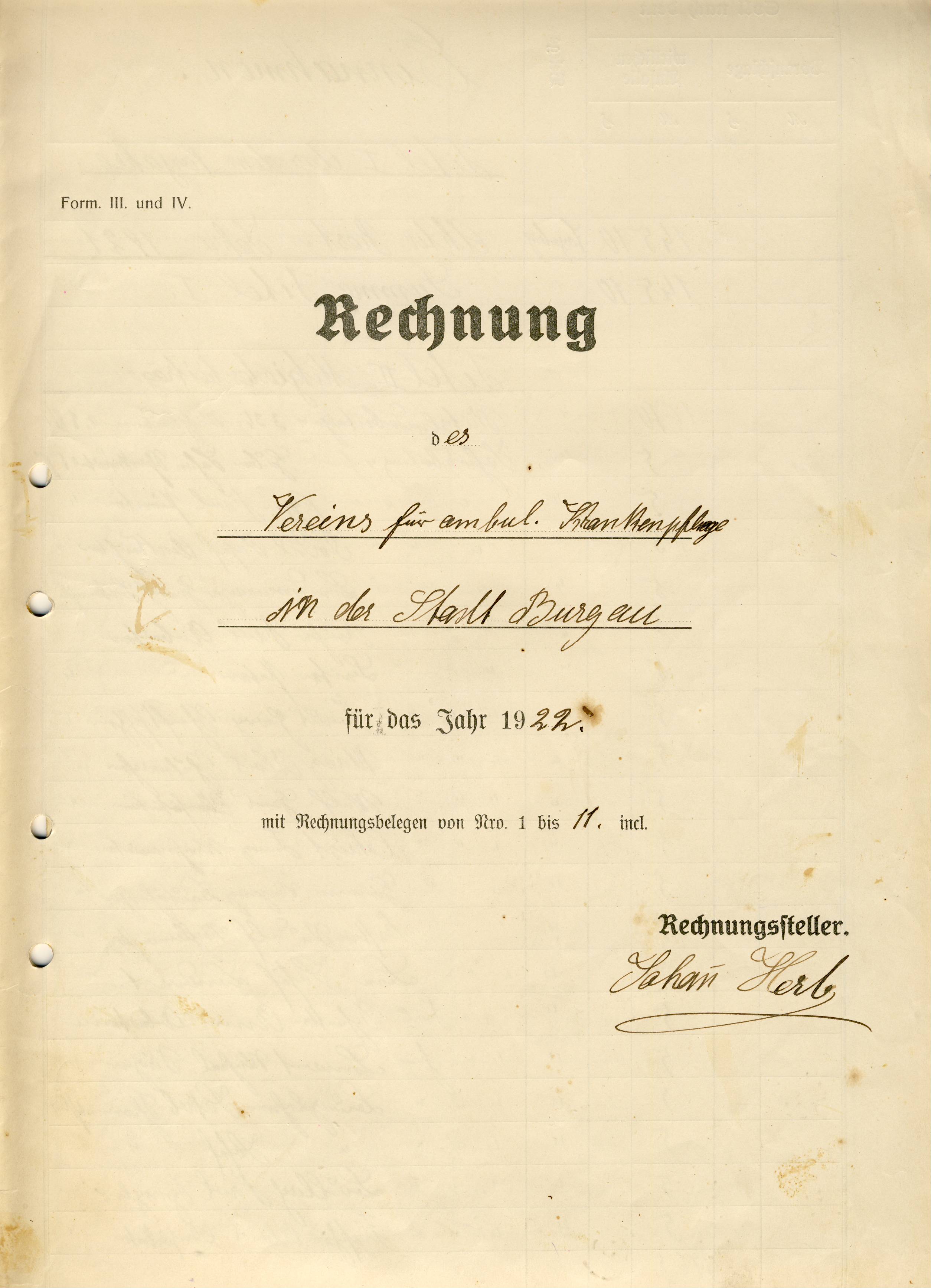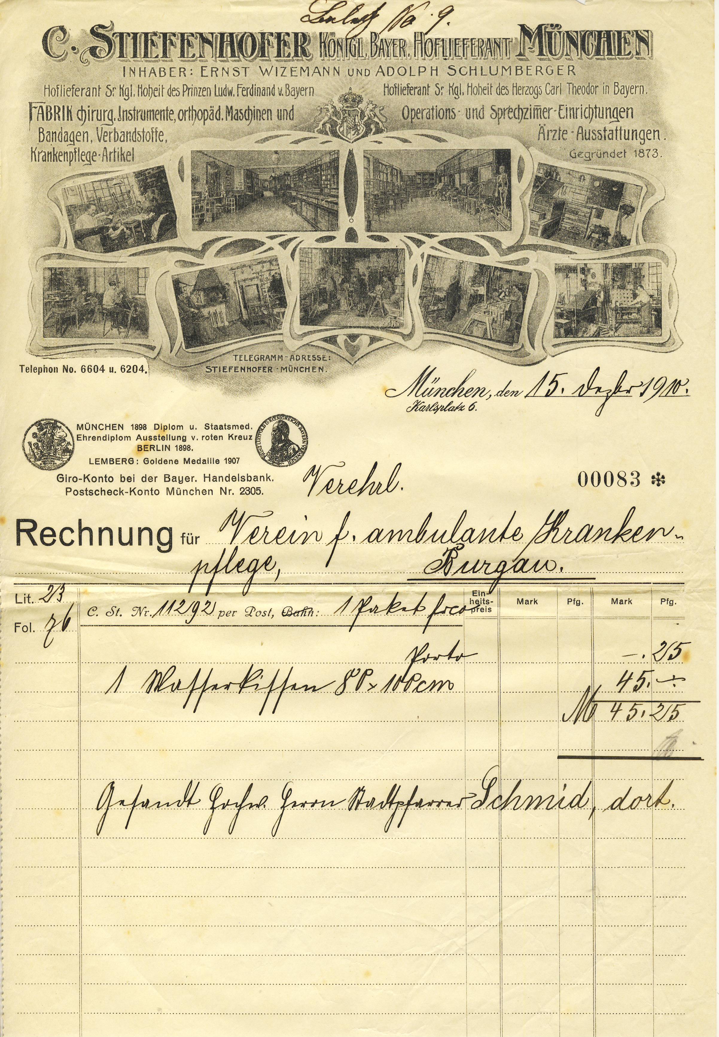 Dem heutigen Krankenpflegeverein Burgau e.V. liegen auch aus den Jahren 1906 bis 1918 einige Rechnungen und Quittungen vor, welche die Ausgaben des damaligen Vereins genau dokumentieren.