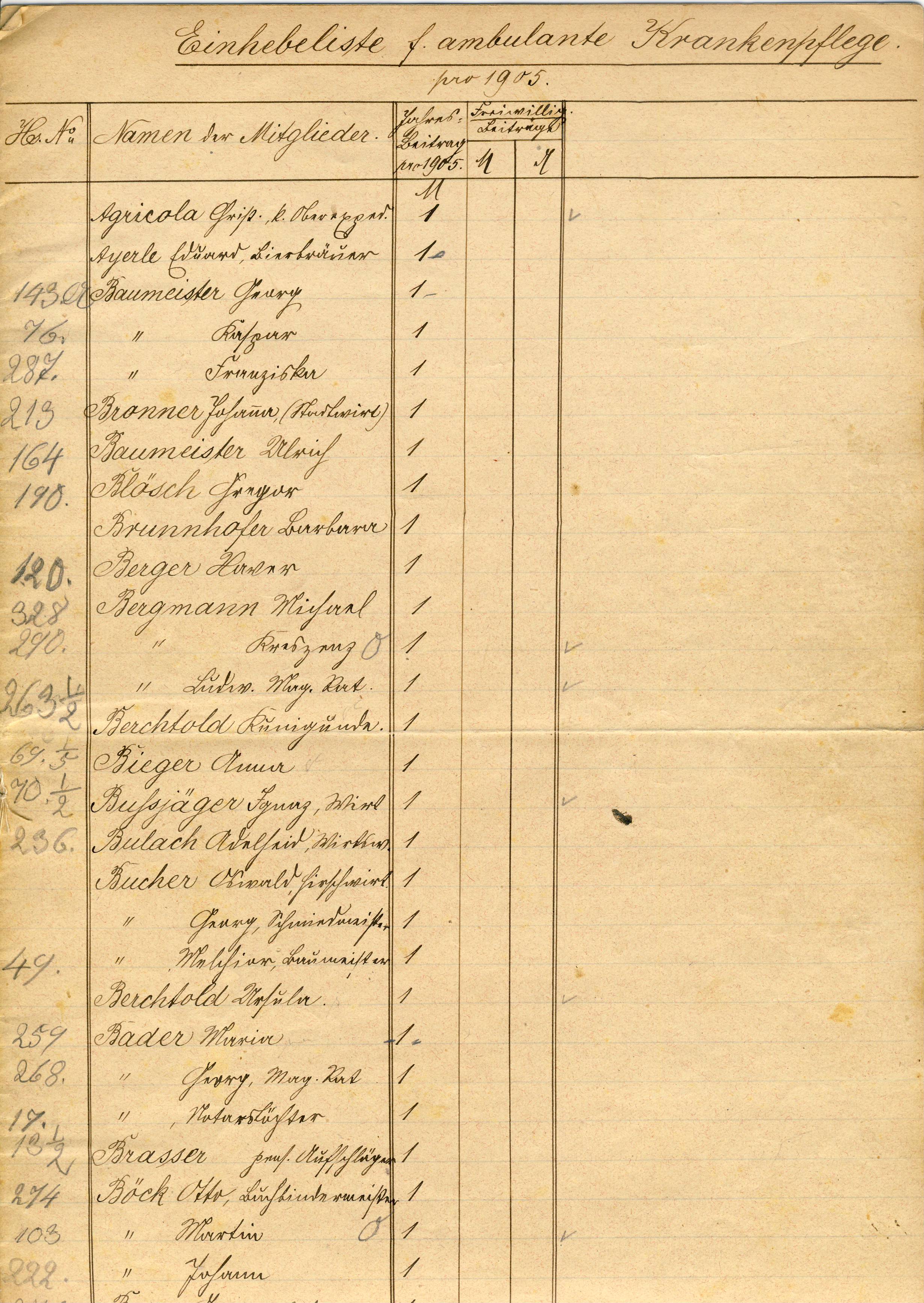 - Aushilf Krankenschwestern haben im Jahre 1913 61 Tage mitgewirkt. Der Herr Vorstandt brachte den Krankenschwestern für überaus gute Verpflegung ein herzliches Vergelts-Gott aus, in das die Versammlung einstimmte.