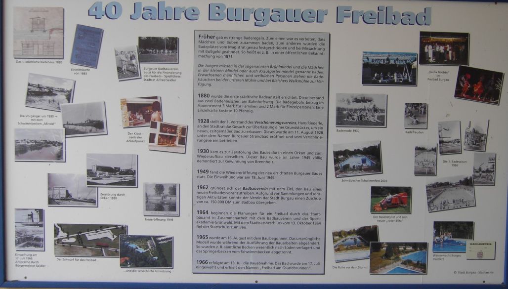 Auf diesem Plakat zum Jubiläum 40 Jahre Freibad Burgau können sie die ganze Entwicklungsgeschichte nachlesen